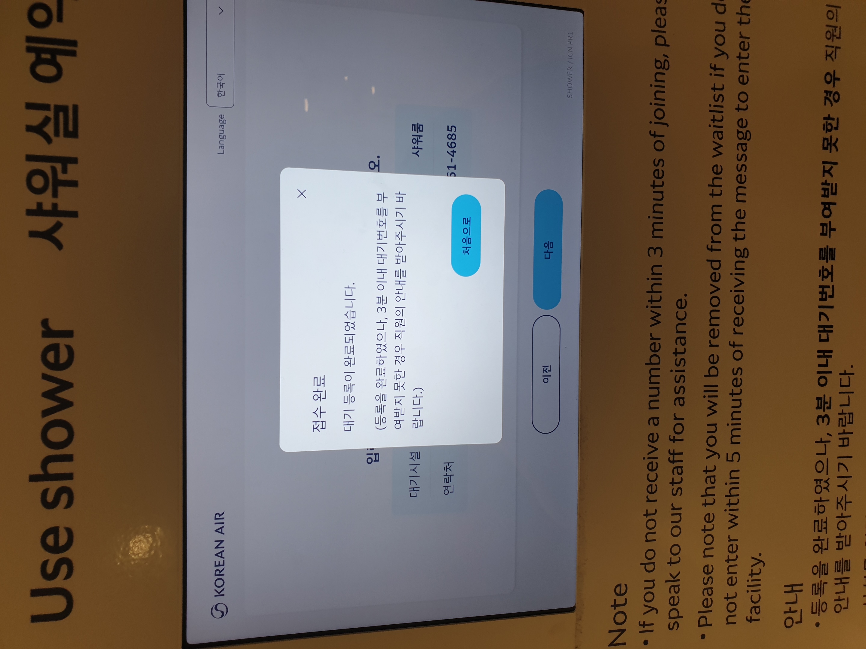- 샤워실은 인기가 많기 때문에 입장하자마자 예약하는 것이 좋아요.